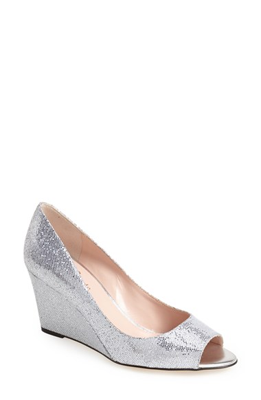 A dazzling covered wedge boosts a lustrous pump styled with a low-cut topline and flirty open toe. A perfect choice for parties or your next special occasion. Color(s): silver. Brand: kate spade new york. Style Name: kate spade new york 'radiant' wedge pump (Women). Style Number: 703560 1.