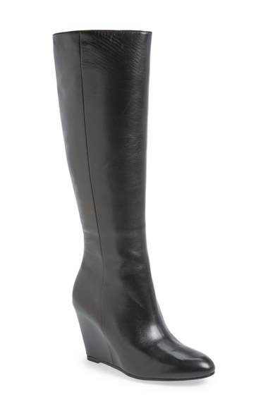 Rock the streamlined fit of this smooth knee-high boot, perfected with a sleek wedge and modern, minimalist seams. Color(s): black calf, black suede. Brand: Via Spiga. Style Name: Via Spiga 'Adina' Wedge Boot (Women). Style Number: 78795.