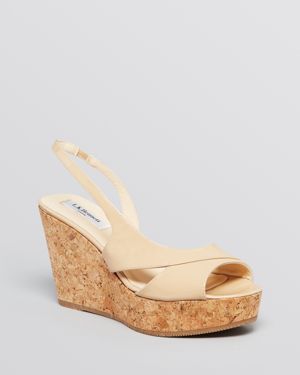 Badgley Mischka Open Toe Wedge Sandals - Melanie Embossed Ankle Strap