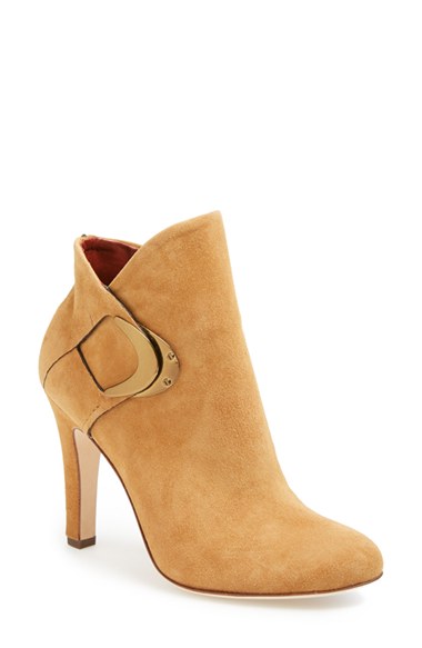 Distinctive hardware adds modern polish to a soft suede bootie that pairs with anything in your closet. An elegantly curved topline ensures a leg-flattering fit. Color(s): fawn suede. Brand: AERIN. Style Name: Aerin 'Sumner' Bootie (Women). Style Number: 714032.