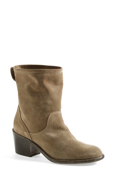 Immaculate topstitching outlines a Western-inspired bootie cast in soft suede. Color(s): fawn suede, rock suede. Brand: ATTILIO GIUSTI LEOMBRUNI. Style Name: AGL Attilio Giusti Leombruni Suede Boot (Women). Style Number: 748718.