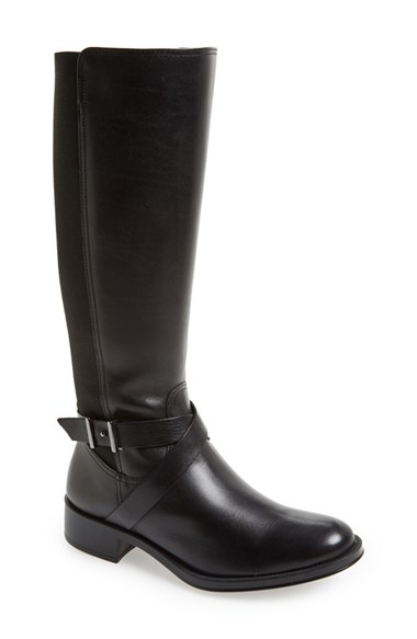 A buckled ankle strap adds sophisticated style on a waterproof leather riding boot fashioned with a stretch back panel to provide a custom fit. Color(s): black. Brand: ANDRE ASSOUS. Style Name: Andre Assous 'Seabiscuit' Waterproof Riding Boot (Women). Style Number: 838214.