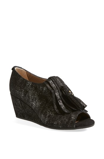 Preppy tassels top the exaggerated kiltie that styles a suede peep-toe bootie perched atop a curvy wedge heel. Color(s): anthracite denim suede. Brand: ANYI LU INTERNATIONAL. Style Name: Anyi Lu 'Jessie' Wedge Bootie (Women). Style Number: 36397