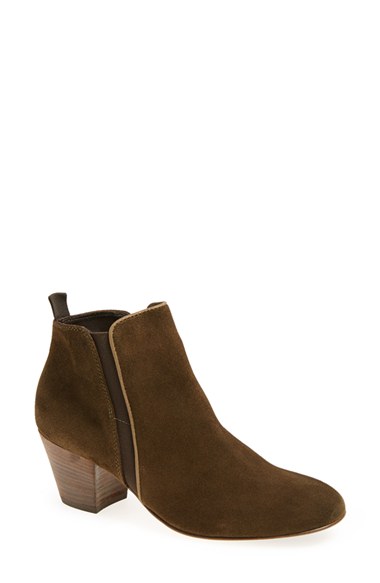 An inset elastic side stripe perfects the fit of a weatherproof suede bootie set on a stacked woodgrain heel. Color(s): black suede, forest suede, smog rubbed suede. Brand: Aquatalia by Marvin K. Style Name: Aquatalia by Marvin K. 'Fabulous' Wea