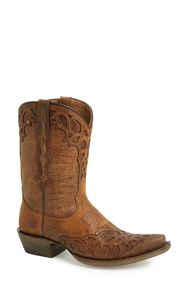 A Western-wear boot with exquisite laser-cut embellishments and a saddle vamp is handcrafted from leather and padded with a comfortable foam insole. Color(s): maple/ rojo, weathered brown. Brand: ARIAT. Style Name: Ariat 'Vera Cruz' Leather Boot (Women). Style Number: 456579.