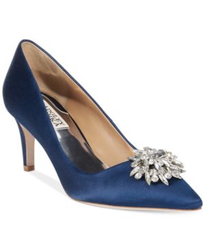 The dramatic jeweled details on the heel of the Kiara evening pumps are sure to turn some heads. By Badgley Michka.