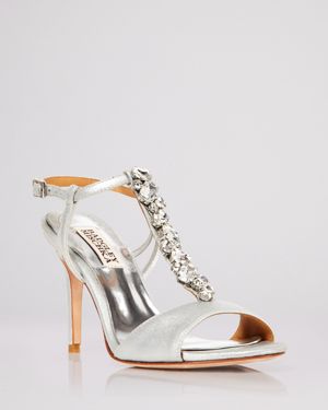 Badgley Mischka Open Toe T Strap Evening Sandals - Martina Jeweled High Heel $235.00 Style: 800554010353