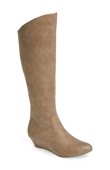 A slim wedge heel extends the street-savvy style of a go-to knee-high boot. Color(s): black, taupe, whiskey. Brand: BC FOOTWEAR. Style Name: BC Footwear 'Try To Explain' Tall Boot (Women). Style Number: 806389.