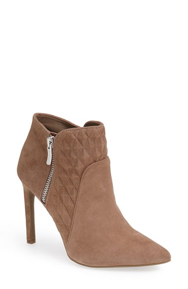 Diamond-quilted paneling transforms this lush suede stiletto bootie into a subtle stunner. Color(s): smoke taupe. Brand: BCBGeneration. Style Name: BCBGeneration 'Chameleon' Pointy Toe Suede Bootie. Style Number: 859015 1.