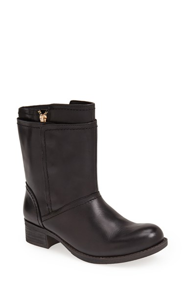 A modern, clean-lined boot with moto inspiration is crafted with a snap cuff that can be folded up or down for street-savvy versatility and a bit of edge. Color(s): black, dark slate. Brand: BCBGeneration. Style Name: BCBGeneration 'Everest' Lea