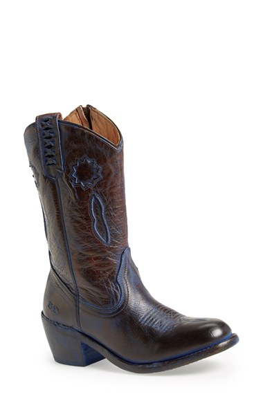 A subtle navy hue highlights the striking cutout and embroidery details of a classic Western boot. Color(s): teak rustic navy. Brand: Bed Stu. Style Name: Bed Stu 'Jura' Western Boot (Women). Style Number: 885820.