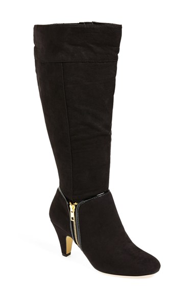 Glossy patent trim adds modern sophistication to a classic tall boot accented with gleaming goldtone hardware. Color(s): black. Brand: BELLA VITA. Style Name: Bella Vita 'Camy II' Tall Boot (Wide Calf) (Women). Style Number: 834440.