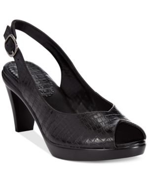 The Wren platform pumps are a stylish addition to your work day. This style be Bella Vita offers a triangular peep toe and adjustable slingback strap.