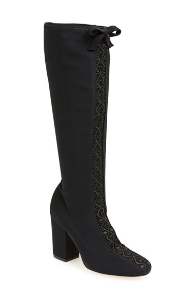 A lacy front panel topped with a dainty bow lends unmistakable vintage sophistication to a sleek knee-high boot. Color(s): black. Brand: Bettye Muller. Style Name: Bettye Muller 'Concerto' Tall Boot (Women). Style Number: 1011045.