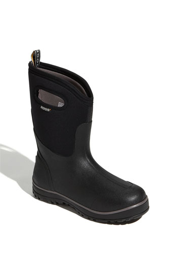A stretchy neoprene shaft fashions a waterproof boot designed to keep feet warm and dry. Cutout handles allow for easy pull-on wear, while the nonslip outsole provides superior traction. Color(s): black. Brand: Bogs Footwear. Style Name: Bogs 'Classic Ultra' Mid High Rain Boot (Men). Style Number: 358478.