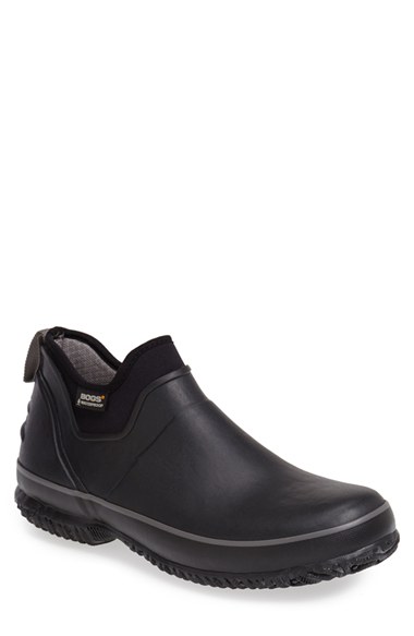 Durable, waterproof rubber forms a low-cut boot lined with EverDry and Max-Wick technology to wick away moisture, and constructed with a wide steel shank for underfoot protection. The low-profile slip-on is also designed with Neo-Tech insulation for comfort and a DuraFresh antiodor protection footbed to fight odor. Color(s): black. Brand: Bogs Footwear. Style Name: Bogs 'Urban Farmer' Boot (Men). Style Number: 839623.