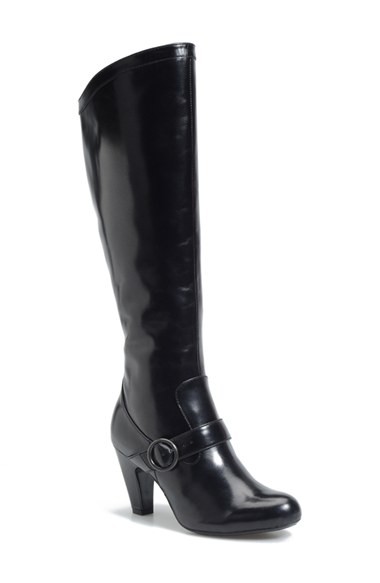 Lustrous vegetable-tanned leather and hand-sewn Opanka construction define an essential tall boot accented with a single buckle strap. Color(s): amerena, black. Brand: Born. Style Name: Born 'Karmen' Tall Boot (Women). Style Number: 755543.