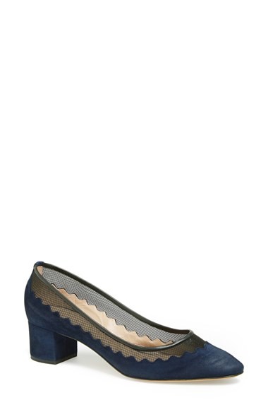 Lush suede and fine mesh offer a statement-making upgrade for a distinguished almond-toe pump. Color(s): black, navy. Brand: Chloe. Style Name: Chloe 'Bridget' Scalloped Almond Toe Pump (Women). Style Number: 871686.