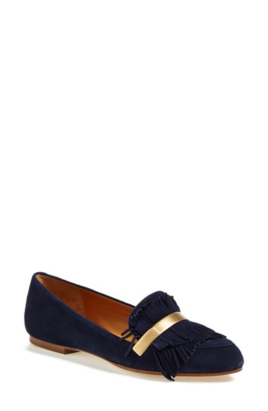Wispy fringe is kept in check with signature hardware on this distinctive loafer flat, kept fresh and feminine with a softened almond toe. Color(s): blue lagoon. Brand: Chloe. Style Name: Chloe 'Daniella' Loafer Flat (Women). Style Number: 71135