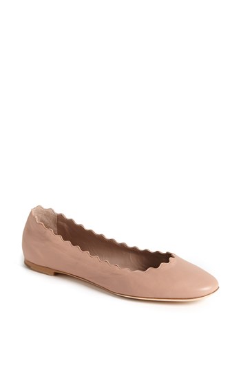 A scalloped topline lends carefree style to a cute and comfortable leather flat. Color(s): black, black dnu, gold, mimosa, pewter, pink, red, red ii, taupe, turquoise. Brand: Chloe. Style Name: Chloe 'Lauren' Scalloped Ballet Flat (Women). Style Number: 702216.