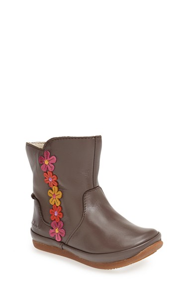 Colorful flowers embellish a flexible leather boot grounded by a grippy sole that gives added stability to new walkers. Color(s): brown. Brand: Clarks. Style Name: Clarks 'Elza Autumn' Leather Boot (Walker). Style Number: 711486.