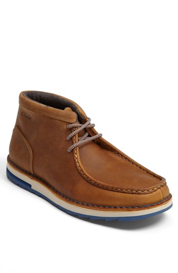 A beefy moccasin toe adds wallaby style to an earthy chukka boot shaped from premium grained leather. Color(s): brown leather, grey leather. Brand: Clarks. Style Name: Clarks 'Folk' Moc Toe Chukka Boot. Style Number: 692654.