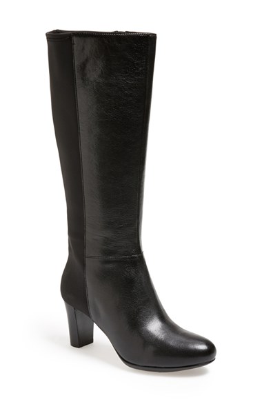 Make a noteworthy entrance in knee-high boots that feature a rich leather front and stretchy fabric in back. Clarks Plus intelligent underfoot cushioning and an OrthoLite footbed provide comfort even on the busiest of days. Color(s): black leather/ fabric