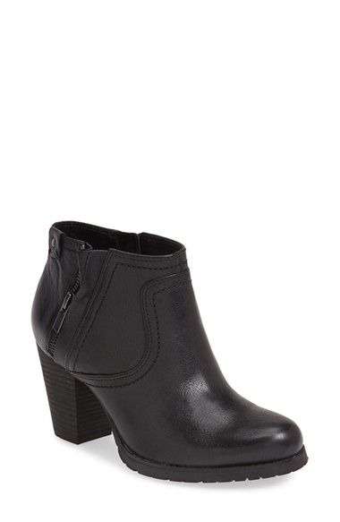 An angled side-zip closure and topstitch-outlined seaming update a go-with-everything bootie cut from hand-distressed leather for a cool, worn-in look. Color(s): black leather, brown leather, grey leather. Brand: Clarks. Style Name: Clarks 'Mission H