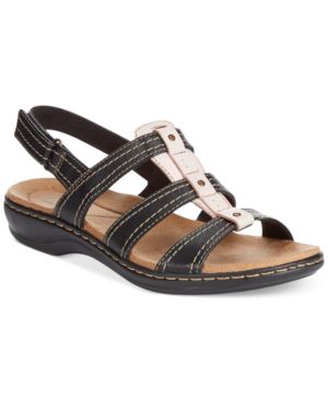 Comfortable style that's super cute, too. The Leisa Daisy flat sandals feature contrasting-colored straps that make your look really pop. By Clarks Collection.