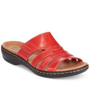 Stitching details add texture to this leather style. The Leisa Grove flat sandals by Clarks Collection feature a fabric sock liner and an Ortholite sheet footbed.