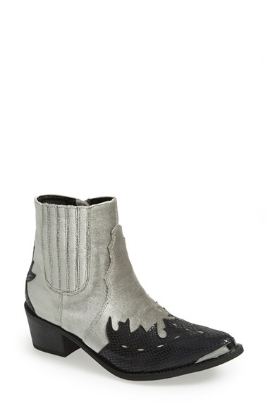 Snake-embossed accents and metal-toe detailing enhance a velvety Western-style boot that's perfect for a night out on the town. Color(s): grey. Brand: Matisse. Style Name: Coconuts by Matisse 'Wolf' Bootie (Women). Style Number: 830333.