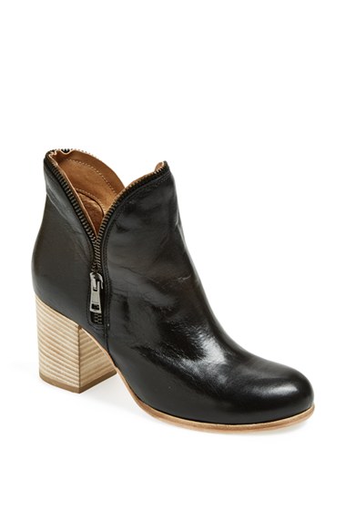 Seductively superfluous zipper teeth lend modern edge to a Western-chic leather boot lifted by a stacked heel. Color(s): black leather. Brand: CORDANI. Style Name: Cordani 'Pizzaz' Boot. Style Number: 837211.