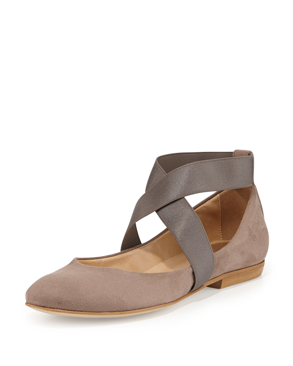 Dee KellerSuede Crisscross Ballerina Flat, MushroomDetailsDee Keller suede ballerina flat.1/2" flat heel. Round toe. Crisscross stretch ankle strap. Padded insole. Rubber outsole. Made in Italy. Designer About Dee Keller: Louisiana-based shoe designer Dee Keller takes vintage references a step forward. Modernized-classic pumps, boots, and sandals are inspired by Dee's Southern heritage. Heel styles range from wedges to stilettos to flats.