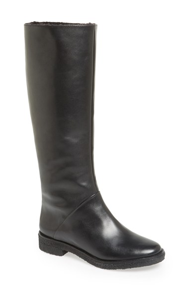 A classic knee-high boot is made ready for cold weather with plush, genuine shearling on the shaft and a slip-resistant, crepe rubber sole on the outside. Color(s): black, rum. Brand: DIANE VON FURSTENBERG. Style Name: Diane von Furstenberg 'Ashton