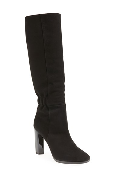 A tall, mirrored heel grounds a lavish suede boot lightly cinched at the ankle. Color(s): black suede. Brand: DIANE VON FURSTENBERG. Style Name: Diane von Furstenberg 'Pagri' Over the Knee Boot (Women). Style Number: 711231.