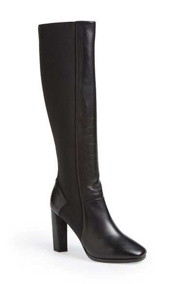 A classic tall boot in rich Italian leather is fitted with a stretchy back panel for a sleek, comfortable fit that adjusts perfectly to your silhouette. Color(s): black. Brand: DIANE VON FURSTENBERG. Style Name: Diane von Furstenberg 'Pella' Tal