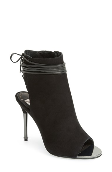 A stunning metal heel supports a glam suede bootie that features laced ankle detailing and a mirror-chrome peep toe. Color(s): black suede. Brand: Dolce Vita. Style Name: Dolce Vita 'Hadlie' Suede Bootie (Women). Style Number: 820397.