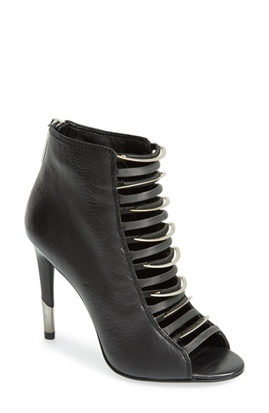 Daring metal hardware and an exposed zipper heighten the scene-stealing glamour of a leather cage bootie. Color(s): black leather. Brand: Dolce Vita. Style Name: Dolce Vita 'Hexx' Cage Bootie (Women). Style Number: 820091.