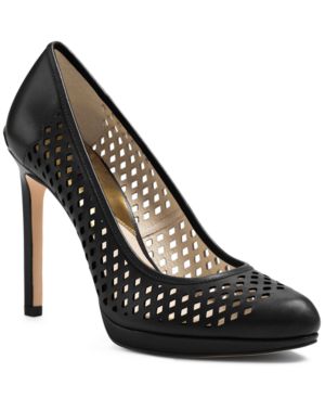 Sophisticated charm. Donald J Pliner's Brave pumps get a boost from a shiny covered heel and leather sole.