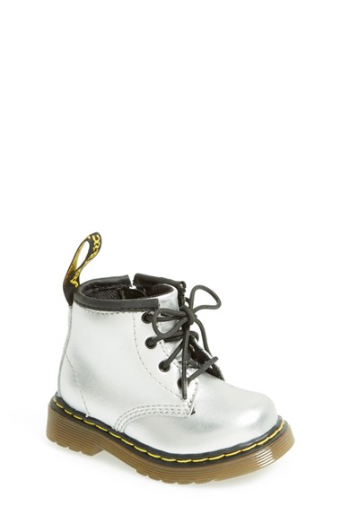 Dr. Martens 'Brooklee' Metallic Leather Boot (Baby & Walker) Silver Alumix Size $74.95 Style: 883985746183