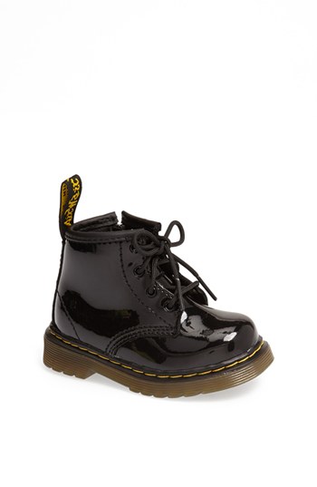 A classic leather boot crafted in patent leather is furnished with an air cushion insole to keep little feet comfy. Color(s): black patent, hot pink, red patent. Brand: Dr. Martens. Style Name: Dr. Martens 'Brooklee' Patent Leather Boot (Baby &a