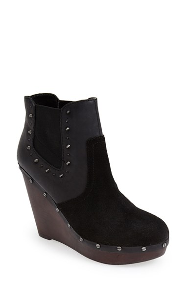 A lofty Chelsea boot offers a rugged, industrial take on a classic style with mixed studs, a woodgrain platform and a suede-and-leather finish. Color(s): black, moonstone. Brand: Dr. Scholl's. Style Name: Dr. Scholl's 'Abbey' Wedge Che