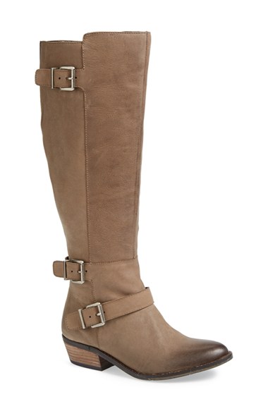 Roughed-out leather brings rich, vintage texture to a tall riding boot styled with a wraparound ankle belt. Color(s): black, dark brown, stone. Brand: DV Footwear. Style Name: DV By Dolce Vita 'Cambridge' Tall Boot (Women). Style Number: 801040.