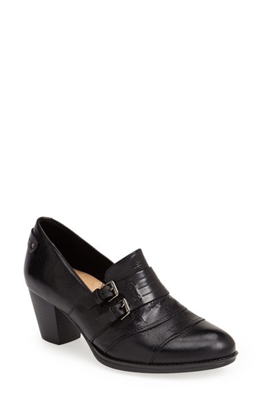 Premium crinkled leather shapes a loafer-inspired pump with a wide, double-buckle strap for a modern twist. The padded heel and supported instep keep you comfortable all day. Color(s): black, taupe. Brand: Earth. Style Name: Earth 'Fir' Leather