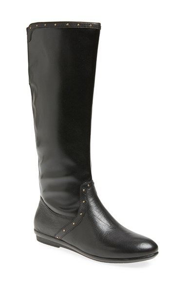 Antiqued studs highlight the clean profile of a classic leather tall boot crafted with a stretch shaft and e360 cushioning to ensure a comfortable, custom fit. Color(s): black nappa. Brand: Easy Spirit. Style Name: Easy Spirit 'e360 - Kandis' Ta