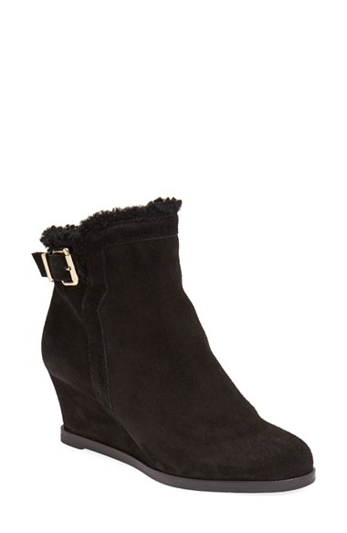 Plush shearling lines a deliciously cozy wedge bootie in sleek, lush suede. Color(s): black. Brand: Fendi. Style Name: Fendi Shearling Lined Wedge Bootie (Women). Style Number: 99912.