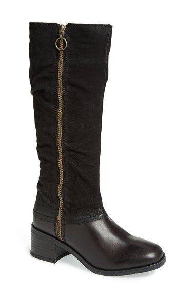 A subtly slouched shaft lends unmistakable textural intrigue to a standby leather boot. Color(s): black/ black, tan/ brown. Brand: FLY LONDON. Style Name: Fly London 'Aba' Leather Boot (Women). Style Number: 467985.