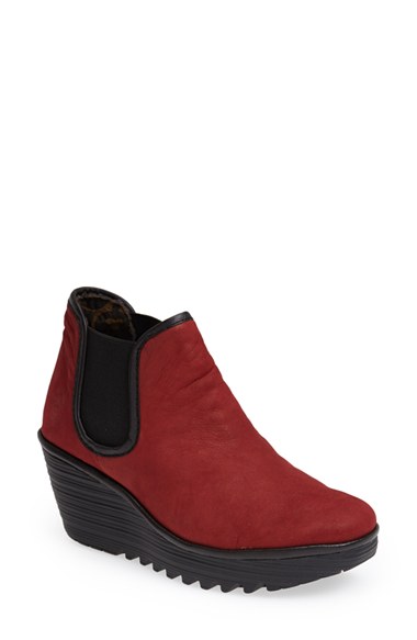 Fly London 'Yat' Wedge Bootie (Women) Cordoba Red/ Black Suede Size $214.95 Style: 5607997506437