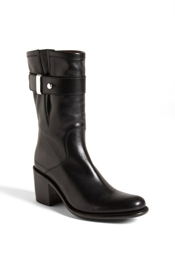 Lavish leather composes an essential riding boot finished with polished silvertone hardware and a chunky stacked heel. Color(s): black leather. Brand: Free Lance. Style Name: Free Lance Riding Boot. Style Number: 924460.