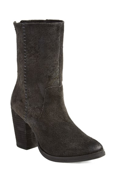 Contrast whipstitching accentuates the Western influence of a standby suede ankle boot, while the lofty stacked heel lends a touch of modern sophistication. Color(s): black, stone. Brand: Free People. Style Name: Free People 'Silk City' Suede Bo